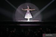 Siluet penyanyi Ruth Sahanaya tampil dalam Konser 40 Tahun Simfoni dari Hati di Jakarta Convention Center, Senayan, Jakarta, Sabtu (22/6/2024). Ruth Sahanaya menggandeng Tohpati sebagai penata musik serta tampil bersama Yura Yunita, Once, Afgan, dan Silent Open Up dalam konser yang memperingati 40 tahun berkaryanya diva Indonesia tersebut. ANTARA FOTO/Sulthony Hasanuddin/aww.