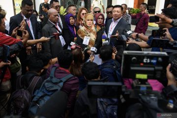 Tim kuasa hukum memberikan keterangan pers usai penundaan sidang perdana praperadilan Pegi Setiawan di Pengadilan Negeri Bandung, Bandung, Jawa Barat, Senin (24/6/2024). Majelis Hakim menunda sidang perdana gugatan praperadilan yang diajukan kuasa hukum Pegi Setiawan atas penetapan sebagai tersangka kasus pembunuhan Vina Cirebon akibat ketidakhadiran pihak termohon dari Polda Jabar. ANTARA FOTO/Novrian Arbi/foc.