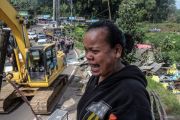 Seorang Pedagang Kaki Lima (PKL) menangis saat penertiban lapak liar di Jalan Raya Puncak, Cisarua, Kabupaten Bogor, Jawa Barat, Senin (24/6/2024). Pemerintah Kabupaten Bogor menyebutkan ada 331 lapak PKL yang ditertibkan di kawasan wisata Puncak yang merupakan bangunan liar. ANTARA FOTO/Yulius Satria Wijaya/foc.