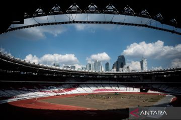 Sejumlah pekerja melakukan perawatan media tanam saat revitalisasi rumput Field of Play (FOP) lapangan Stadion Utama Gelora Bung Karno (SUGBK) di Jakarta, Rabu (26/6/2024). Pusat Pengelolaan Komplek Gelora Bung Karno (PPKGBK) melakukan perawatan tersebut agar Field of Play (FOP) lapangan Stadion Utama GBK itu dapat menyesuaikan dengan iklim dan cuaca di Jakarta. ANTARA FOTO/Aprillio Akbar/wpa.
