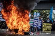 Sejumlah buruh melakukan aksi unjuk rasa menolak program Tapera di depan Kantor Kementerian Keuangan, Jakarta, Kamis (27/6/2024). Dalam aksi yang dilakukan oleh Aliansi Aksi Sejuta Buruh, Kongres Aliansi Serikat Buruh (KASBI) dan Serikat Pekerja Seluruh Indoneisa (SPSI) tersebut mendesak pemerintah membatalkan program Tabungan Perumahan Rakyat (Tapera). ANTARA FOTO/Bayu Pratama S/rwa.