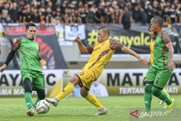 Sejumlah pesepak bola Sriwijaya FC kuning meluapkan kegembiraannya usai mencetak gol ke gawang tim Sriwijaya FC hijau saat pertandingan reuni legenda Sriwijaya FC di Stadion Gelora Sriwijaya Jakabaring (GSJ), Jakabaring Sport City (JSC) Palembang, Sumatera Selatan, Minggu (30/6/2024). Pertandingan tersebut mempertemukan para pemain legenda Sriwijaya FC pada musim kompetisi tahun 2008 dan 2012. ANTARA FOTO/Nova Wahyudi/nym.