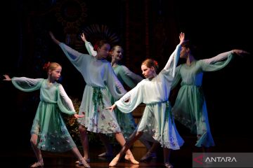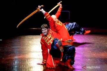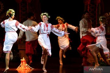 Penari menampilkan tarian khas Ukraina saat Bali World Culture Celebration (BWCC) di Taman Budaya Bali, Denpasar, Bali, Selasa (9/7/2024). Pementasan berbagai tarian dan musik yang ditampilkan SLAVA Ukrainian Culture Center itu untuk mempererat hubungan Indonesia-Ukraina khususnya dalam bidang seni budaya serta untuk memeriahkan Pesta Kesenian Bali 2024. ANTARA FOTO/Fikri Yusuf/aww.