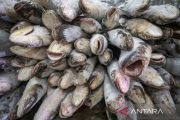 Tumpukan ikan di gudang penyimpanan berpendingin (cold storage) di fasilitas Cold Storage Kementerian Kelautan dan Perikanan (KKP) di Muara Baru, Jakarta, Senin (15/7/2024). Menteri Kelautan dan Perikanan Sakti Wahyu Trenggono menyatakan target indikator utama produksi perikanan Kementerian Kelautan pada rencana kerja pemerintah atau RKP 2025 sebesar 24,58 juta ton. ANTARA FOTO/Erlangga Bregas Prakoso/rwa.