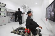 Sejumlah prajurit TNI AL memperagakan pengoperasian peralatan simulasi di Ruang Kontrol Teknik di Gedung Submarine Machinery Propulsion System Simulator Koopskasel Koarmada RI usai peresmian di Kesatrian Koopskasel, Koarmada II, Surabaya, Jawa Timur, Jumat (19/7/2024). Gedung Submarine Machinery Propulsion System Simulator itu merupakan tempat untuk menyelenggarakan latihan guna meningkatkan profesionalisme prajurit kapal selam TNI AL dalam sistem pendorongan kapal selam saat berlayar di permukaan maupun berlayar di bawah permukaan. ANTARA FOTO/Didik Suhartono/foc.
