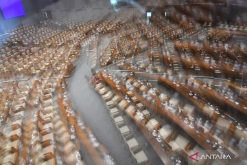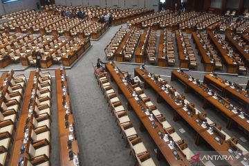 Kursi-kursi kosong terlihat saat sidang paripurna di Gedung Parlemen, Jakarta, Kamis (22/8/2024). DPR menunda rapat paripurna pengesahan Rancangan Undang-Undang atau RUU Pilkada dan akan menjadwalkan kembali karena jumlah anggota DPR yang hadir tidak kuorum atau hanya 89 orang yang hadir dan 87 orang izin. ANTARA FOTO/Aditya Pradana Putra/aww.