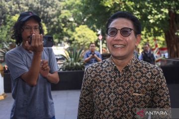 Menteri Desa, Pembangunan Daerah Tertinggal, dan Transmigrasi (Mendes PDTT) Abdul Halim Iskandar melambaikan tangan ke arah wartawan saat hadir untuk menjalani pemeriksaan di Gedung Merah Putih KPK, Jakarta, Kamis (22/8/2024). Abdul Halim memenuhi panggilan KPK untuk menjadi saksi dalam penyidikan dugaan korupsi suap pengurusan dana hibah untuk kelompok masyarakat dari APBD Provinsi Jawa Timur tahun anggaran 2019–2022. ANTARA FOTO/Reno Esnir/aww.