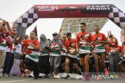 Sejumlah peserta berlari saat mengikuti Merah Putih Run for Palestine di Stadion Benteng Reborn, Kota Tangerang, Banten, Minggu (25/8/2024). Ajang lari sejauh 5 km tersebut digelar guna mengumpulkan donasi yang akan disalurkan untuk membantu warga Palestina korban serangan militer Israel. ANTARA FOTO/Sulthony Hasanuddin/Spt.