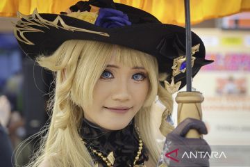 Cosplayer mengenakan kostum karakter Navia dari permainan video Genshin Impact saat menghadiri Jak-Japan Matsuri 2024 di Plaza Parkir Timur GBK, Jakarta, Sabtu (14/9/2024). Festival budaya Jepang terbesar di Indonesia, Jak-Japan Matsuri yang mengusung tema "Menjelajahi Jepang" itu digelar pada 14-15 September 2024. ANTARA FOTO/Dhemas Reviyanto/Spt.