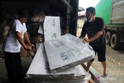 Pekerja mengangkat bilik suara Pilwako Pontianak ke gudang penyimpanan logistik Komisi Pemilihan Umum (KPU) Kota Pontianak di Pontianak, Kalimantan Barat, Kamis (26/9/2024). KPU Kota Pontianak menerima 3.616 bilik suara berbahan karton duplex kedap air yang nantinya didistribusikan ke Tempat Pemungutan Suara (TPS) Pemilihan Wali Kota dan Wakil Wali Kota Pontianak di wilayah setempat. ANTARA FOTO/Jessica Wuysang/aww.