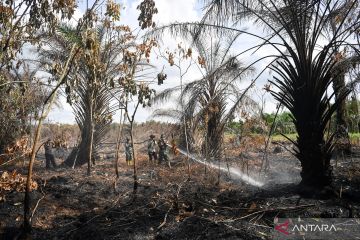 Warga melakukan pemadaman kebakaran hutan dan lahan (Karhutla) di Desa Gumai- Putak Kecamatan Gelumbang, Muara Enim, Sumatera Selatan, Selasa (1/10/2024). Kepala BNPB Letjen TNI Suharyanto memantau langsung pemadaman karhutla di daerah tersebut dan meminta Provinsi Sumatera Selatan agar tidak terus menerus menjadi primadona dalam kasus karhutla. ANTARA FOTO/Nova Wahyudi/aww.