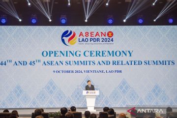 Presiden Republik Demokratik Rakyat Laos Thongloun Sisoulith memberikan sambutan saat pembukaan Konferensi Tingkat Tinggi (KTT) ke-44 dan ke-45 ASEAN 2024 di National Convention Center, Vientiane, Laos, Rabu (9/10/2024). KTT ASEAN 2024 akan berlangsung pada 8-11 Oktober 2024 dengan tema ASEAN: Enhancing Connectivity and Resilience. ANTARA FOTO/M Agung Rajasa/rwa.ANTARA FOTO/M Agung Rajasa (ANTARA FOTO/M Agung Rajasa)