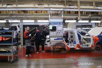 Pekerja menyelesaikan perakitan mobil merek Geely dalam pabrik di kota Xi'an, provinsi Shaanxi, China, Senin (14/10/2024). Perakitan mobil di pabrik milik Zhejiang Geely Holding Group seluas 140,6 hektar tersebut menggunakan 902 unit robot dan tenaga kerja manusia dengan produksi hingga 300 ribu unit per tahun berupa mobil irit bahan bakar, mobil elektrik dan hibrida. ANTARA FOTO/Desca Lidya Natalia/agr