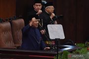 Presiden Prabowo Subianto memberi salam usai dilantik pada sidang paripurna MPR di Gedung Nusantara, Kompleks Parlemen, Senayan, Jakarta, Minggu (20/10/2024). Prabowo Subianto dan Gibran Rakabuming Raka dilantik sebagai Presiden dan Wakil Presiden Republik Indonesia masa bakti 2024-2029. ANTARA FOTO/Rivan Awal Lingga/aww.