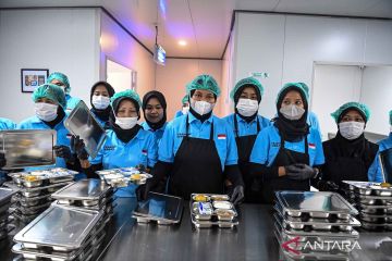 Petugas menyiapkan makanan bergizi di gedung Satuan Pelayanan Makan Bergizi, Magelang, Jawa Tengah, Sabtu (26/10/2024). Satuan Pelayanan Makan Bergizi di Kota Magelang menjadi percontohan nasional yang bertanggung jawab mengoordinasikan penyaluran makan bergizi kepada 3.000 orang di wilayahnya, yakni ibu hamil, ibu menyusui, anak Balita, anak sekolah dari PAUD - SMA termasuk santri dan sekolah keagamaan lainnya di kota Magelang. ANTARA FOTO/Muhammad Adimaja/nym.