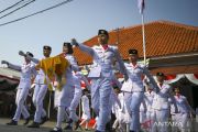 Petugas pengibar bendera berbaris usai mengibarkan bendera Merah Putih pada upacara peringatan Hari Sumpah Pemuda di Museum Sumpah Pemuda, Jakarta, Senin (28/10/2024). Upacara peringatan 96 tahun Sumpah Pemuda pada 2024 mengusung tema Maju Bersama Indonesia Raya. ANTARA FOTO/Muhammad Ramdan/wpa.