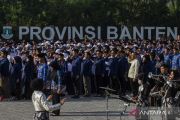 Sejumlah aparatur sipil negara (ASN) mengikuti upacara peringatan Hari Sumpah Pemuda di lapangan kantor Gubernur Banten, Kota Serang, Banten, Senin (28/10/2024). Peringatan Hari Sumpah Pemuda ke-96 tahun 2024 mengusung tema Maju Bersama Indonesia Raya, yang diharapkan dapat menjadi sumber inspirasi serta pendorong semangat bagi pemuda Indonesia untuk meraih prestasi di tingkat global. ANTARA FOTO/Angga Budhiyanto/wpa.
