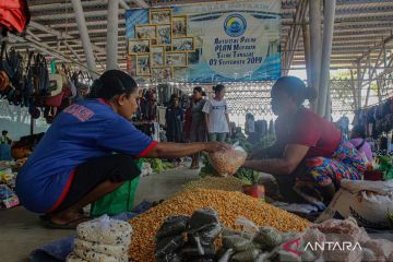 Aktivitas jual beli pada hari pasar di Pos Lintas Batas Negara (PLBN) Motaain, Desa Silawan, Kabupaten Belu, Nusa Tenggara Timur, Selasa (29/10/2024). Pada hari pasar yang dikelola Badan Nasional Pengelola Perbatasan (BNPP) dan berlangsung tiap hari Selasa pukul 09.00 WIT hingga 12.00 WIT itu para calon pembeli dari Batugade Timor Leste akan bisa masuk ke Indonesia tanpa menggunakan paspor dengan beberapa ketentuan guna berbelanja kebutuhan pokok. ANTARA FOTO/Mega Tokan/nym.