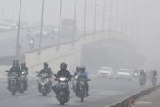Warga berkendara dalam kabut polusi udara yang menyelimuti kota New Delhi, India, Rabu (13/11/2024). Polusi udara di kota itu disebutkan telah mencapai level 'severe' atau 'very poor' yang mengakibatkan jarak pandang menjadi terbatas. ANTARA FOTO/Shrikant Singh via Reuters Conne/ANI/foc.