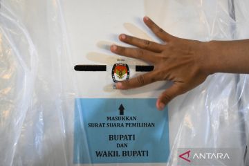 Pekerja menata logistik Pilkada Kabupaten Tangerang yang akan didistribusi di Tigaraksa, Kabupaten Tangerang, Banten, Selasa (19/11/2024). KPU Kabupaten Tangerang mulai mendistribusikan 14.886 logistik Pilkada 2024 untuk 4.484 TPS yang tersebar di 29 kecamatan. ANTARA FOTO/Sulthony Hasanuddin/agr