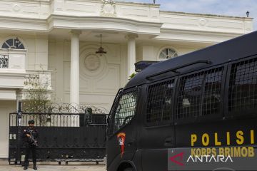 Personel Brimob berjaga di depan rumah tersangka pengedar narkotika jenis sabu saat penggeledahan di Perumahan Sukajadi, Batam, Kepulauan Riau, Kamis (5/12/2024). Penggeledahan tersebut merupakan pengembangan kasus penyelundupan 40kg sabu-sabu dengan mengamankan tujuh tersangka sindikat narkotika internasional jaringan Malaysia di Pantai Nemo, Nongsa, Batam pada Jumat (29/11). ANTARA FOTO/Teguh Prihatna/Spt.