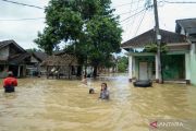 Anggota BPBD Kabupaten Pandeglang dan Babinsa memantau kondisi banjir di Desa Idaman, Pandeglang, Banten, Kamis (5/12/2024). Sebanyak 430 rumah yang berada di empat kampung di Desa Idaman tersebut terisolir akibat banjir dari luapan sungai Cilemer setinggi 1-2,5 meter sejak Senin (2/12) dan warga memilih tetap bertahan di rumahnya masing-masing. ANTARA FOTO/Muhammad Bagus Khoirunas/aww.