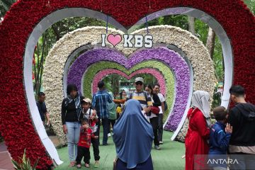 Sejumlah warga berkunjung di Kebun Binatang Surabaya, Surabaya, Jawa Timur, Rabu (1/1/2025). Perusahaan Daerah (PD) Taman Satwa Kebun Binatang Surabaya mencatat pada Rabu (1/1) pukul 11.00 WIB sebanyak 22.000 orang berkunjung di Kebun Binatang Surabaya pada libur tahun baru 2025. ANTARA FOTO/Didik Suhartono/aww.
