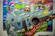 Seniman memperlihatkan hasil karya gitar lukis di Lumajang, Jawa Timur, Sabtu (4/1/2025). Seniman yang menekuni jasa lukis gitar sejak 2019 dengan biaya sekitar Rp10 juta - Rp12 juta per buah tersebut memanfaatkan media sosial untuk memasarkan jasanya dan telah melukis gitar milik sejumlah musisi dan gitaris Indonesia. ANTARA FOTO/Irfan Sumanjaya/foc.