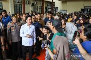 Wakil Presiden Gibran Rakabuming Raka (keempat kiri) berbincang dengan sejumlah warga korban kebakaran di Posko Bencana Polres Metro Jakarta Pusat, Kemayoran, Jakarta, Selasa (21/1/2025). Wapres dalam kunjungannya membagikan mainan untuk anak-anak serta meninjau lokasi kebakaran permukiman padat penduduk yang berdampak pada 1.700 orang dari 607 kartu keluarga. ANTARA FOTO/Sulthony Hasanuddin/YU