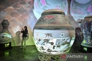 Pengunjung melihat karya seni instalasi dalam pameran KONGSI: Akulturasi Tionghoa di Nusantara, di Museum Nasional, Jakarta, Selasa (11/2/2025). Pameran tersebut digelar dalam rangka mengeksplorasi lebih dalam tentang sejarah, peran dan warisan budaya masyarakat Tionghoa dalam membentuk keberagaman budaya di Nusantara. ANTARA FOTO/Aprillio Akbar/Spt.