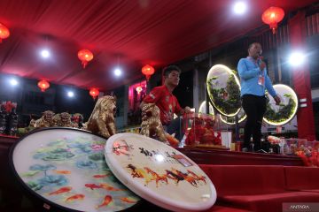 Juru lelang dan panitia penyelenggara Cap Go Meh melakukan proses lelang barang-barang mewah di kawasan Pecinan Singkawang, Kalimantan Barat, Rabu (12/2/2025). Panitia penyelenggara Cap Go Meh 2025 Singkawang melelang berbagai barang mewah seperti pajangan porselen, hiasan rumah, lukisan, kalung emas serta lainnya yang telah menerima pemberkatan dari para Dewa dan kemudian selanjutnya uang hasil lelangnya tersebut digunakan untuk kepentingan sosial bagi masyarakat yang membutuhkan. ANTARA FOTO/Jessica Wuysang/foc.