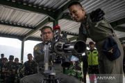 Kepala Staf Angkatan Darat (Kasad) Jenderal TNI Maruli Simanjuntak (kiri) mencoba senjata pesawat udara Door gun Bell-412 saat kunjungan di Daerah Latihan Pusat Pendidikan Infanteri (Rahlat Pusdikif), Cipatat, Kabupaten Bandung Barat, Jawa Barat, Senin (17/2/2025). Dalam kunjungan kerjanya, Kasad meninjau kegiatan latihan penembakan senjata pesawat udara dan memberikan bantuan sosial berupa sembako kepada masyarakat sekitar serta. ANTARA FOTO/Abdan Syakura/YU