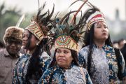 Warga pendukung kepala daerah terpilih dari Provinsi Papua Pegunungan mengunakan irate kepala khas Papua di Lapangan Silang Monas, Jakarta, Kamis (20/2/2025). Presiden Prabowo Subianto akan melantik secara serentak sebanyak 961 kepala daerah terpilih hasil Pilkada 2024 yang terdiri dari 33 gubernur dan 33 wakil gubernur, 363 bupati, 362 wakil bupati, 85 wali kota dan 85 wakil wali kota di Istana Kepresidenan. ANTARA FOTO/Bayu Pratama S/foc.