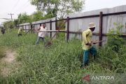 Anggota Kelompok Tani Hutan Forest Tree membongkar pagar yang menutup kawasan hutan di Pesisir Pantai, Desa Regemuk, Kabupaten Deli Serdang, Sumatera Utara, Minggu (23/2/2025). Dinas Lingkungan Hidup dan Kehutanan Sumatera Utara bersama Kelompok Tani Hutan Forest Tree membongkar pagar yang dibangun pengusaha tambak di kawasan hutan Pesisir Pantai Deli Serdang karena merupakan hutan milik negara. ANTARA FOTO/Yudi Manar/Spt.