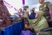 Petugas membantu warga yang memilih biskuit kemasan saat Garage Day di bulan Ramadhan di Surabaya, Jawa Timur, Rabu (12/3/2025). Pemerintah Kota Surabaya bersama sejumlah donatur menggelar Garage Day di 30 lokasi di Surabaya dengan penerima manfaat sekitar 4.552 warga kurang mampu serta dapat memilih berbagai produk yang telah ditentukan jumlahnya secara gratis. ANTARA FOTO/Didik Suhartono/nym.