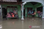 Seorang warga beristirahat di depan teras rumahnya yang terendam banjir di Dusun Mintreng, Desa Baturagung, Kecamatan Gubug, Kabupaten Grobogan, Jawa Tengah, Rabu (12/3/2025). Menurut warga korban banjir, pada hari keempat banjir yang merendam desa yang berlokasi di samping tanggul Sungai Tuntang yang jebol itu berangsur surut dari ketinggian bervariasi sekitar 50 cm - 2 meter pada Minggu (9/3) lalu menjadi sekitar 10-80 cm per Rabu (12/3) pukul 17:00 WIB, menyusul sudah mulai tertutupnya tanggul yang jebol tersebut oleh Balai Besar Wilayah Sungai Pemali-Juana. ANTARA FOTO/Aji Styawan/rwa.