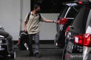 Petugas Komisi Pemberantasan Korupsi (KPK) membuka pintu mobil untuk memasukkan koper saat penggeledahan di Kantor Komite Olahraga Nasional Indonesia (KONI) Jawa Timur di Surabaya, Jawa Timur, Selasa (15/4/2025). KPK menggeledah kantor KONI terkait kasus dugaan tindak pidana korupsi pengelolaan dana hibah pokmas di lingkungan Pemerintah Provinsi Jawa Timur pada 2021-2022. ANTARA FOTO/Didik Suhartono/nym.