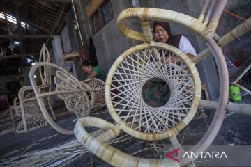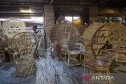 Pekerja menyelesaikan pembuatan kursi rotan di sentra produksi rotan Tegalwangi, Cirebon, Jawa Barat, Selasa (29/4/2025). Dinas Perdagangan dan Perindustrian Kabupaten Cirebon mencatat nilai ekspor mebel rotan Cirebon sejak Januari hingga April 2025 menembus angka 3,16 juta dolar AS atau setara Rp51,3 miliar dan diproyeksikan untuk terus mengalami peningkatan. ANTARA FOTO/Dedhez Anggara/tom.