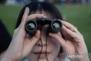 Penonton menggunakan binokular untuk melihat pertandingan babak kualifikasi kategori lead putra seri ketiga IFSC Climbing World Cup 2025 di Pulau Peninsula, Nusa Dua, Bali, Jumat (2/5/2025). Dalam babak kualifikasi tersebut tiga atlet Indonesia Putra Tri Ramadani, Raviandi Ramadhan dan Muhammad Rizky Syahrafli Simatupang berhasil lolos ke babak semifinal. ANTARA FOTO/Bayu Pratama S/Spt.