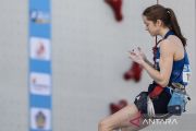 Atlet panjat tebing Britania Raya Erin Mcneice turun menggunakan tali usai memanjat pada babak kualifikasi kategori lead putri seri ketiga IFSC Climbing World Cup 2025 di Pulau Peninsula, Nusa Dua, Bali, Jumat (2/5/2025). Dalam babak kualifikasi tersebut atlet Jepang Ai Mori dan atlet Britania Raya Erin Mcneice meraih posisi teratas setelah meraih puncak di dua rute. ANTARA FOTO/Bayu Pratama S/Spt.
