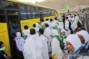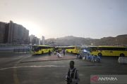 Jamaah calon haji berjalan menuju bus di Terminal Shib Amir, kawasan Masjidil Haram, Makkah, Arab Saudi, Selasa (20/5/2025). Terminal bus tersebut melayani 14 rute dari hotel-hotel jamaah calon haji Indonesia yang terletak di kawasan Syisyah dan Raudhah menuju Masjidil Haram dan sebaliknya. ANTARA FOTO/Andika Wahyu/agr