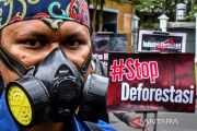Aktivis lingkungan melakukan aksi di depan Gerbang Pancasila, Kompleks Parlemen, Senayan, Jakarta, Jumat (23/5/2025). Aksi tersebut merupakan bentuk protes terhadap kejahatan korporasi dan dampak ekologis yang terjadi di Kalimantan Tengah. ANTARA FOTO/Rivan Awal Lingga/tom.
