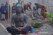 Sejumlah seniman Komunitas Lima Gunung menampilkan teatrikal berjudul Jamasan Lendut saat memperingati Hari Peradaban Desa V di padepokan Tjipta Boedaja Tutup Ngisor, Sumber, Dukun, Magelang, Jawa Tengah, Rabu (21/5/2025). Peringatan Hari Peradaban Desa yang digelar di kawasan lereng Gunung Merapi itu mengusung tema "Napak Bumi" sebagai bentuk ekspresi seniman sekaligus pesan agar manusia menjaga alam sekitar dan melestarikan lingkungan yang semakin rusak akibat eksploitasi. ANTARA FOTO/Anis Efizudin/tom.