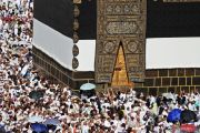 Jamaah haji dari berbagai negara berdoa sambil berusaha memegang dinding pintu Kakbah di Masjidil Haram, Makkah, Arab Saudi, Selasa (10/6/2025). Sebagian jamaah haji telah menyelesaikan semua rangkaian ibadah haji termasuk Tawaf Wada sebelum pulang ke negara masing-masing. ANTARA FOTO/Andika Wahyu/foc.