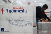 Pekerja mengemas kargo jamaah haji yang akan pulang ke Indonesia di Hotel Moro Alalameyah, Makkah, Arab Saudi, Kamis (12/6/2025). Sebagian jamaah haji memanfaatkan jasa kargo untuk mengirimkan barang belanjaan mereka ke tanah air yang bertarif 22 riyal per kg dengan masa pengiriman 14-21 hari. ANTARA FOTO/Andika Wahyu/nz