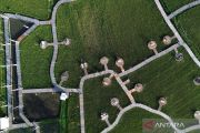 Foto udara destinasi wisata berbasis pertanian di Lembah Harau, Limapuluhkota, Sumatera Barat, Jumat (20/6/2025). Objek wisata tersebut memanfaatkan lahan pertanian masyarakat dengan sistem kontrak dan mengganti biaya panen padi milik petani yang tertutup jalan atau penginapan. ANTARA FOTO/Iggoy el Fitra/nym.