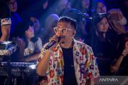 Vokalis grup musik Project Pop Djoni Permato menyanyi dalam konser perayaan ulang tahun Project Pop yang ke-29 di Anjungan Sarinah, Jakarta, Jumat (20/6/2025). Dalam konser tersebut mereka menampilkan sejumlah lagu andalan mereka, seperti Lumpia vs Bakpia Pacarku Superstar, Goyang Duyu, Ingatlah Hari Ini. ANTARA FOTO/Jasmine Nadhya Thanaya/YU