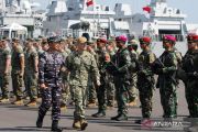 Prajurit TNI AL dan personel Angkatan Laut Amerika Serikat (United States Navy) mengikuti pembukaan Latihan Bersama (Latma) Cooperation Afloat Readiness and Training (CARAT) 2025 di Koarmada II, Surabaya, Jawa Timur, Senin (23/6/2025). Latma CARAT 2025 merupakan kegiatan latihan bersama TNI AL bersama Angkatan Laut Amerika Serikat (United States Navy) dan Korps Marinir Amerika Serikat (United States Marine Corps) yang digelar pada 23-30 Juni 2025 dengan tujuan memperkuat hubungan kerja sama militer serta meningkatkan profesionalisme prajurit TNI AL, US Navy, dan USMC. ANTARA FOTO/Didik Suhartono/wpa.