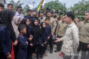 Wakil Presiden Gibran Rakabuming Raka (kanan) berbincang dengan siswa usai meninjau proses belajar mengajar dan fasilitas Sekolah Rakyat Menengah Pertama di Pekanbaru, Riau, Senin (28/7/2025). Peninjauan tersebut dilakukan untuk melihat langsung fasilitas dan proses belajar mengajar di sekolah rakyat tersebut. ANTARA FOTO/Rony Muharrman/rwa.