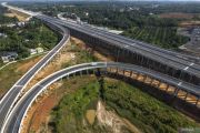 Foto udara kendaraan melintas di Jalan Tol Trans Sumatera (JTTS) Betung-Tempino-Jambi (Betejam) Seksi 3 Segmen Tempino-Simpang Ness di Muaro Jambi, Jambi, Minggu (14/9/2025). PT Hutama Karya (Persero) secara resmi mulai mengoperasikan Jalan Tol Betejam Seksi 3 Segmen Tempino-Simpang Ness sepanjang 18,49 kilometer tanpa tarif mulai 14 September 2025 sehingga melengkapi pengoperasian tanpa tarif Jalan Tol Betejam Seksi 3 Segmen Bayung Lencir-Tempino sejak akhir 2024. ANTARA FOTO/Wahdi Septiawan/barANTARA FOTO/WAHDI SEPTIAWAN (ANTARA FOTO/WAHDI SEPTIAWAN)